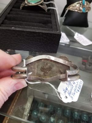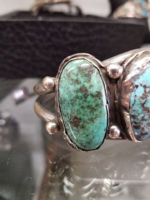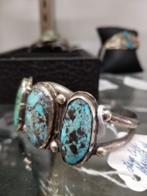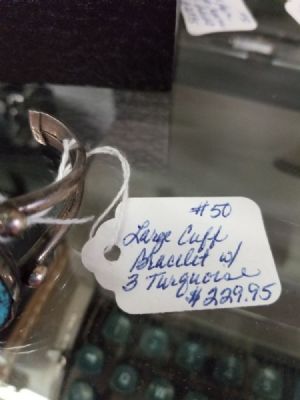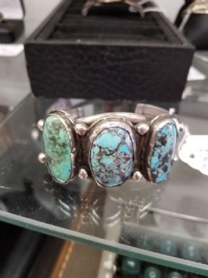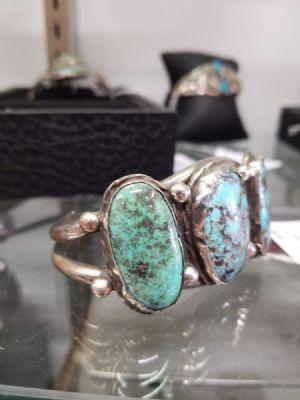 Large Silver Cuff Bracelet With 3 Large Turquoise StonesWe appreciate you shopping with us on our online store and we are happy to ship these items to any location in the United States. You are also welcome to shop with us at our storefront location which is: The Junk Shun Barn Flea Market Antique Mall 4242 HWY 65 South Harrison, AR 72601 If you'd like to save on shipping you are welcome to pick up on site as well. If you need to know more about an item feel free to contact us at 870-743-6865. $229.95