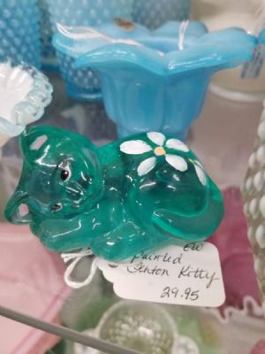 Fenton Turquoise Hand Painted KittenWe appreciate you shopping with us on our online store and we are happy to ship these items to any location in the United States. You are also welcome to shop with us at our storefront location which is: The Junk Shun Barn Flea Market Antique Mall 4242 HWY 65 South Harrison, AR 72601 If you'd like to save on shipping you are welcome to pick up on site as well. If you need to know more about an item feel free to contact us at 870-743-6865. $29.95