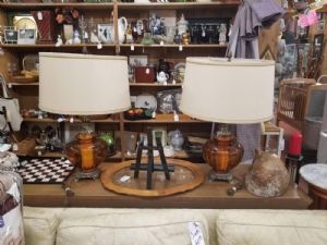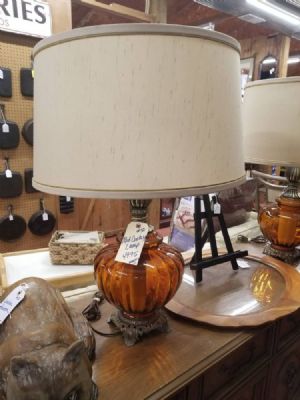 Mid-Century Modern Lamp - Amber Base - Works – JUNK-SHUN Barn Flea Market